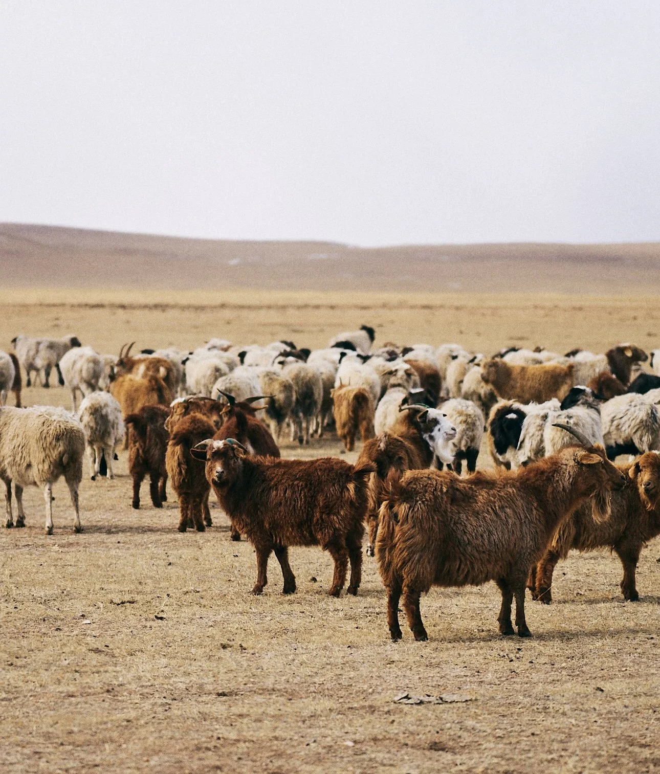 カシミヤはモンゴルや中国、イランなど夏と冬の寒暖差が激しい過酷な山岳地帯で生きているカシミヤ山羊から取れる天然の産毛のことです。冬はマイナス30℃という厳しい環境で生き延びるために、カシミヤ山羊の表面は粗野で太い獣毛が覆っていますが、その内側には細く長く柔らかい産毛があります。その産毛こそがカシミヤの暖かさの所以で、繊維が細ければ細いほど空気を抱え込み、そして体温を外に逃さないという断熱材の役割を果たしています。
